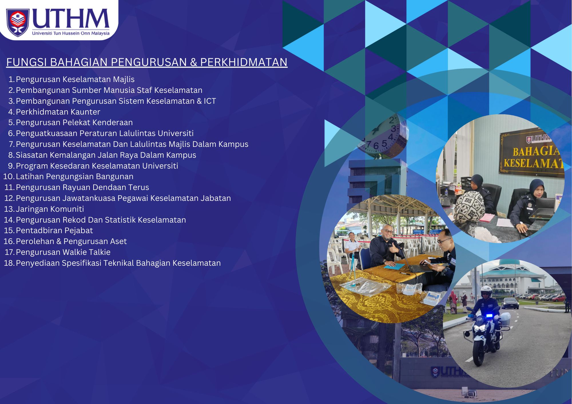 Ketua Bahagian Pengurusan & Perkhidmatan : SI/PB Mohd Azwan bin Md Azali. No. Tel : 07 453 7143